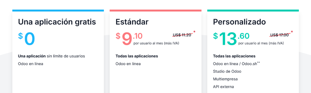 Con Odoo puedes comenzar gratis con funciones básicas, crecer con planes de pago por usuario según tus necesidades, o escalar sin límites con planes de usuarios ilimitados, todo en una misma plataforma